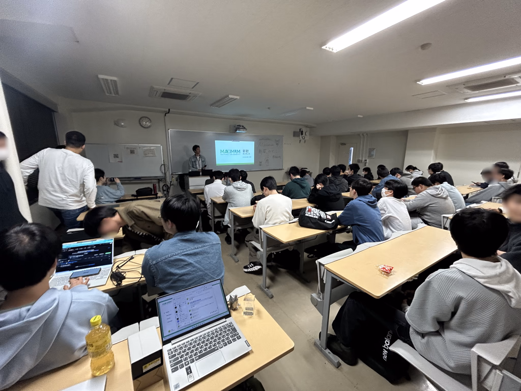 始めに、ガイダンスに参加してくださった皆さん、本当にありがとうございました! 前年に引き続き多くの方にお越しいただき、2日間での参加者は45名となりました。 Maximumの幅広い活動を紹介させていただいた都合で、説明が長くなってしまいましたが、 皆さんに最後まで耳を傾けていただけたことを嬉しく思います。 その後のサークルメンバーとの交流も通して、サークルの雰囲気を感じていただけていたら幸いです。 ガイダンスで聞き逃したことや、もっと詳しく知りたいことがあれば、当日ご招待したDiscordサーバーやX(旧Twitter)を通して、気軽に質問してください。 また、サークルにまだ入会していない方や新歓に参加できなかった方も、 講習会への参加や活動の見学はいつでも大歓迎ですので、是非お越しください。 最後に、ガイダンス当日に即入会してくださった皆さん、 数あるサークルからMaximumを選んでいただき、本当にありがとうございます。 これから一緒に活動できることを楽しみにしています!